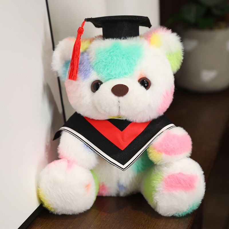 Doctor Hat Teddy Bear Doll Plush Toy Small Sitting Tie-Dye Bear Doll Boys Girls Students Graduation Gift Cartoon Animals Dolls