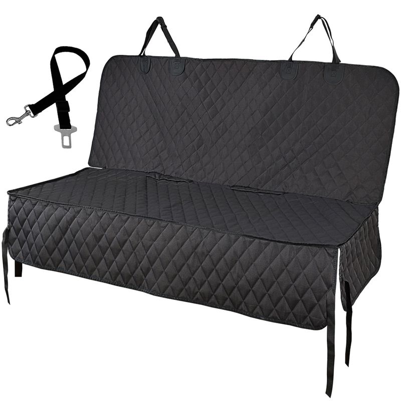 100% WATERPROOF WITH SIDE FLAPS - Vailge bench dog backseat cover is unique quilted without any holes.Choose 600D oxford with water-resistant coating and tpu material as waterproof layers which help to prevent leaks and messes, especially if your dog jumps right into the car from the rain.Side flaps plus front flap around bench seat cover for dogs makes your bench seats end from muddy paws, dirty debris, dog hairs and scratches.