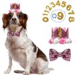 Dog Cat Birthday Crown Hat Bow Tie Set Composite Non Woven Fabric Reusable Headband Suitable Small Medium Sized Pet Supplies