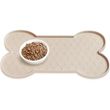 This puppy kitten feeding pad is in the shape of a bone, with a texture of many pet paw prints on the front. It has a strong grip, is non-slip, and waterproof. It is available in a variety of colors.