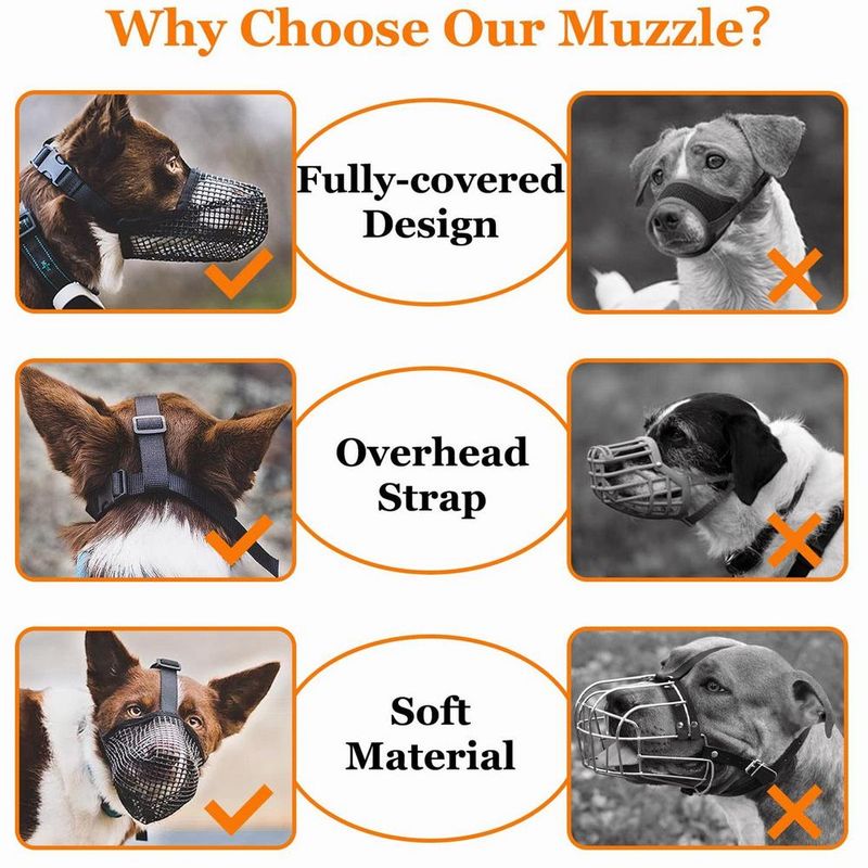 Soft but Durable Mesh Dog Muzzle: a fully closed mesh design. The mesh sides are foldable and soft but still resistant and durable. Exceptionally resistant to abrasion, puncture, and tear. Since it is a soft muzzle, it isn't appropriate for bite-risk dogs but can be great for public transport or in other situations when friendly dogs must wear a muzzle. In addition, it is very lightweight and highly packable - it can be folded and stored in a pocket easily.
