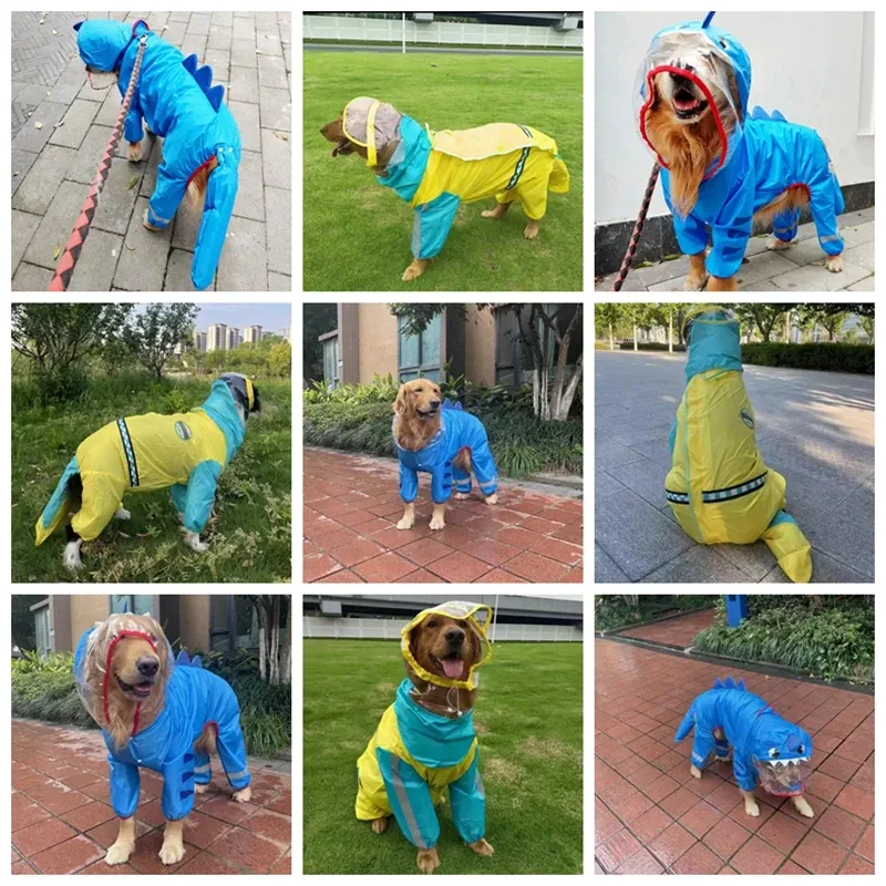 Dog Raincoat Waterproof Dogface Large Dog Rain Coat Jacket Reflective Adjustable Pet Dog Raincoat with Hood Pet Supplies