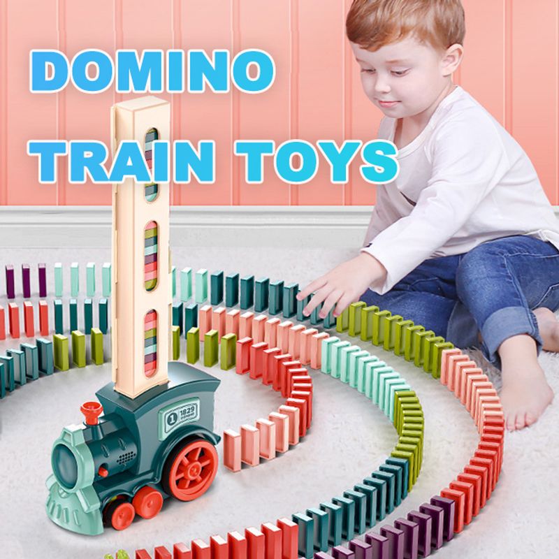 Domino Train Toys Baby Toys Car Puzzle Automatic Release Licensing Electric Building Blocks Train Toy Blue 120PCS