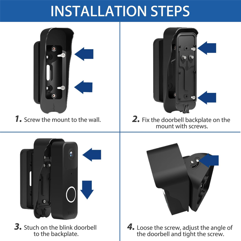 About this item: [Adjustable Angles]The blink doorbell angle mount adjust from 45° to 135°, providing you the best viewing angle of front porch or entryway that you desired. Blink doorbell holder is perfect for monitoring visitors, deliveries and more. More choices, more convenience. [Applicable to Blink Doorbell]The doorbell bracket specially designed for Blink Video Doorbell, provides a perfect fit and keeps your camera securely in place. This blink door corner mount will provide you a wider field of view and better observe visitors in front of the door. Wider viewing range, stronger home security. (Blink Doorbell is NOT included) [Easy Wall Mount Installation]The included screws and wall anchors make it easy to install our blink doorbell camera mount securely onto any type of wall surface [Weather Resistant Design]: With water-proof design blink replacement mount, put the blink doorbell fit perfectly inside. Greatly increased your security, and it doesn't block the sensor function. Blink video doorbell mount can withstand all types of weather conditions, ensuring that your camera is protected year-round. [Durable and Versatile] : Blink doorbell mount for apartments, condo, office room, rental, dorm. Safeguarding your blink doorbell angle mount whether installed at the front door, back door, or any other outdoor location. Material: plastic colour: black Package Contents: 1 x doorbell backplate Holder Only the above package content, other products are not included. Note: Light reflection and different displays may cause the color of the item in the picture a little different from the real thing. The measurement allowed error is +/- 1-3cm.