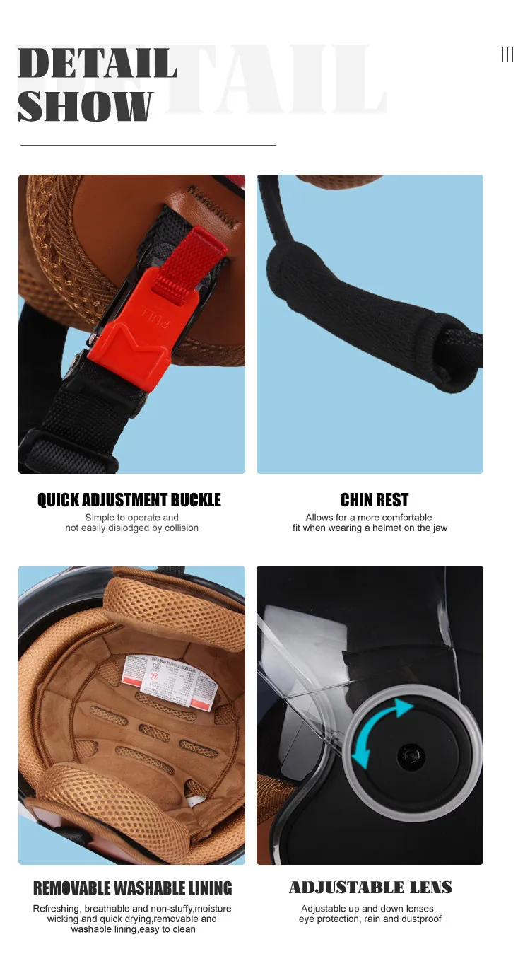 DOT certification Protective helmet Dual Lens Vintage Helmets Four Seasons Racing Half Helmet