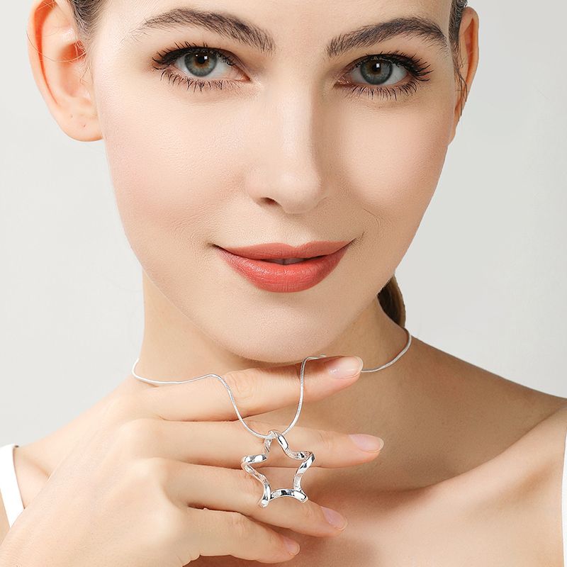 DOTEFFIL 925 Sterling Silver Starfish Pendant Necklace 16-30 Inch Snake Chain For Women Fashion Wedding Engagement Jewelry