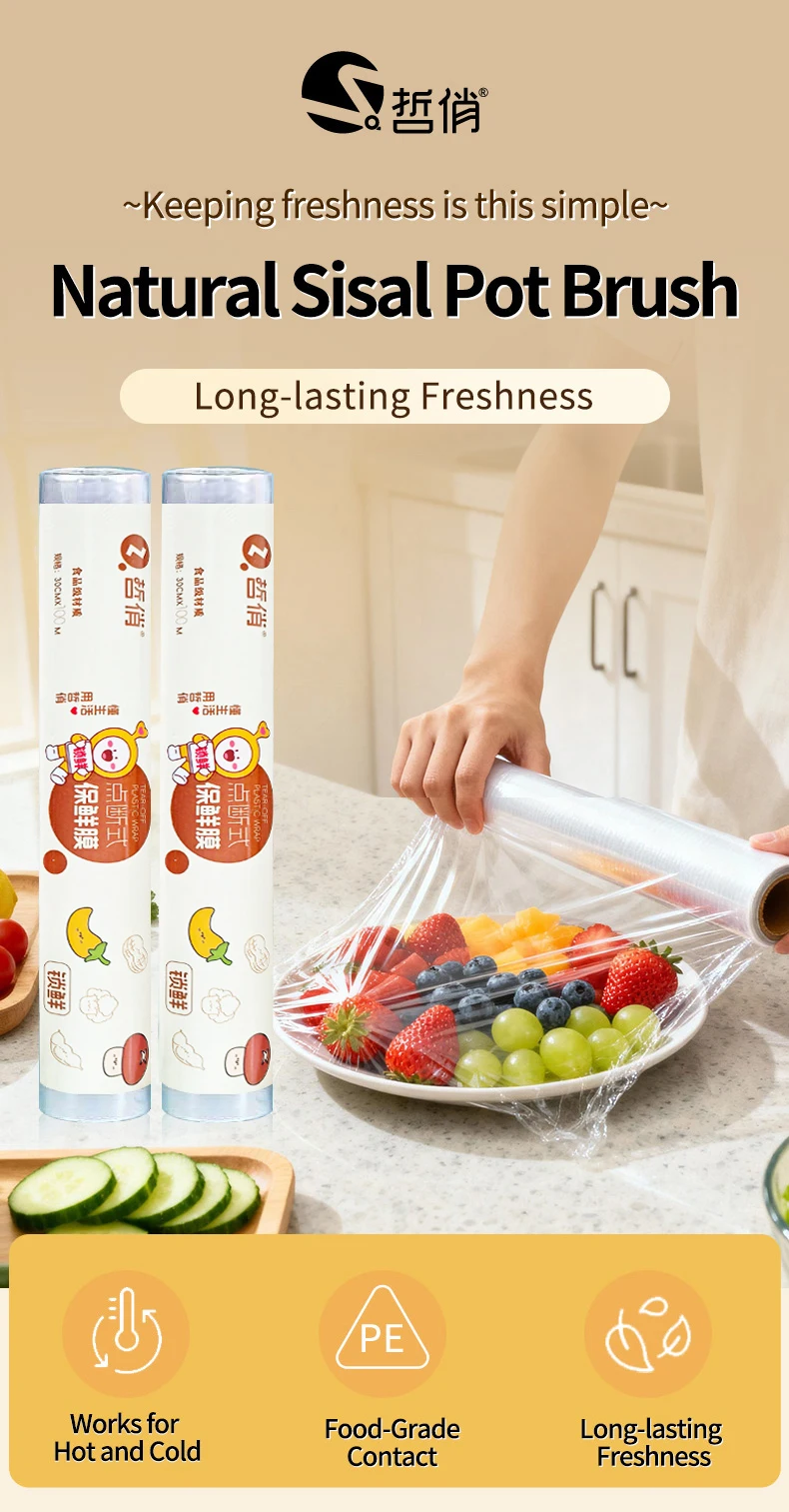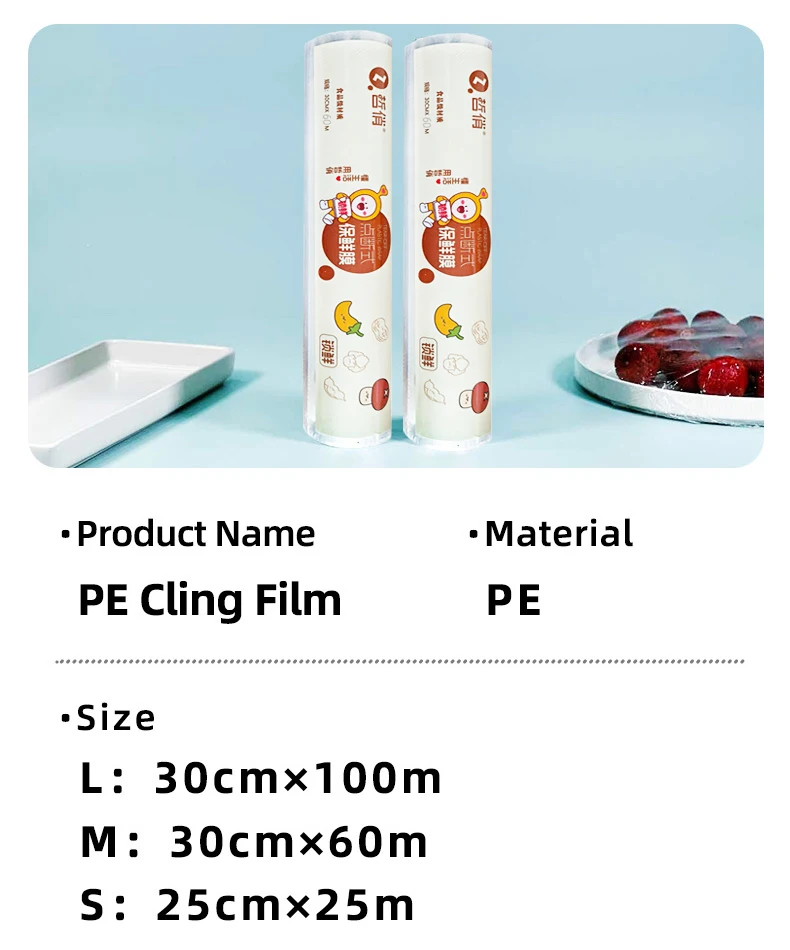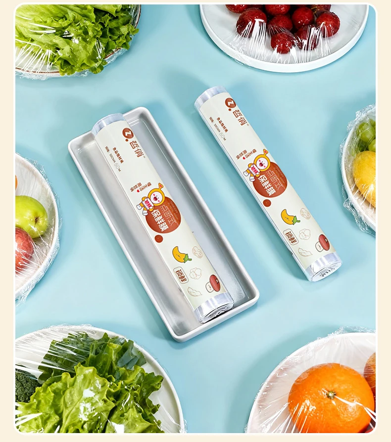 Dotted Line Easy Tear Cling Film Roll Microwave Safe PE Food Wrap for Kitchen Refrigerator Fresh Keeping Storage Disposable