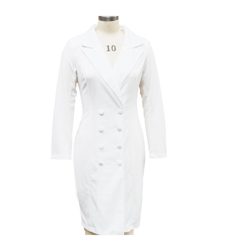 Double-breasted Blazer Dress Fashion Slim-fitting Hip-wrapped Lapel Long-sleeved Dresses Office Commuting Long Jacket Outwear For Women's Clothing Grey XL