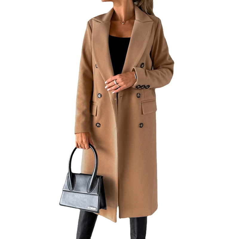 Double Breasted Lapel Coat Winter Fashion Solid Slim Long Jacket Long Sleeve Tops Womens Clothing Army Green S