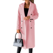 Double Breasted Lapel Coat Winter Fashion Solid Slim Long Jacket Long Sleeve Tops Womens Clothing Pink 2XL