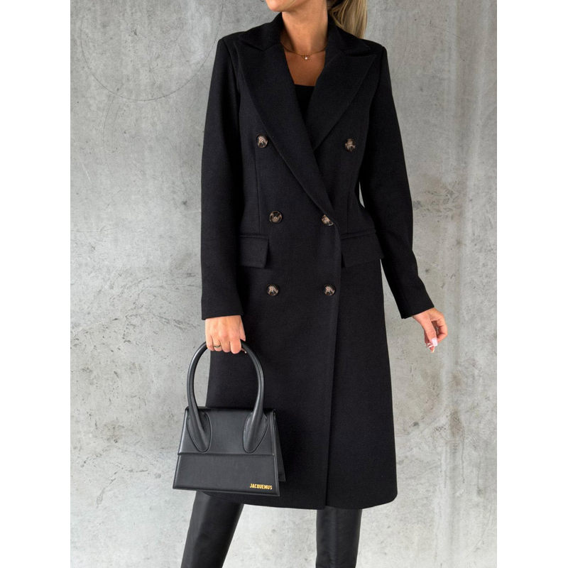 Double Breasted Lapel Coat Winter Fashion Solid Slim Long Jacket Long Sleeve Tops Womens Clothing Sky Blue S