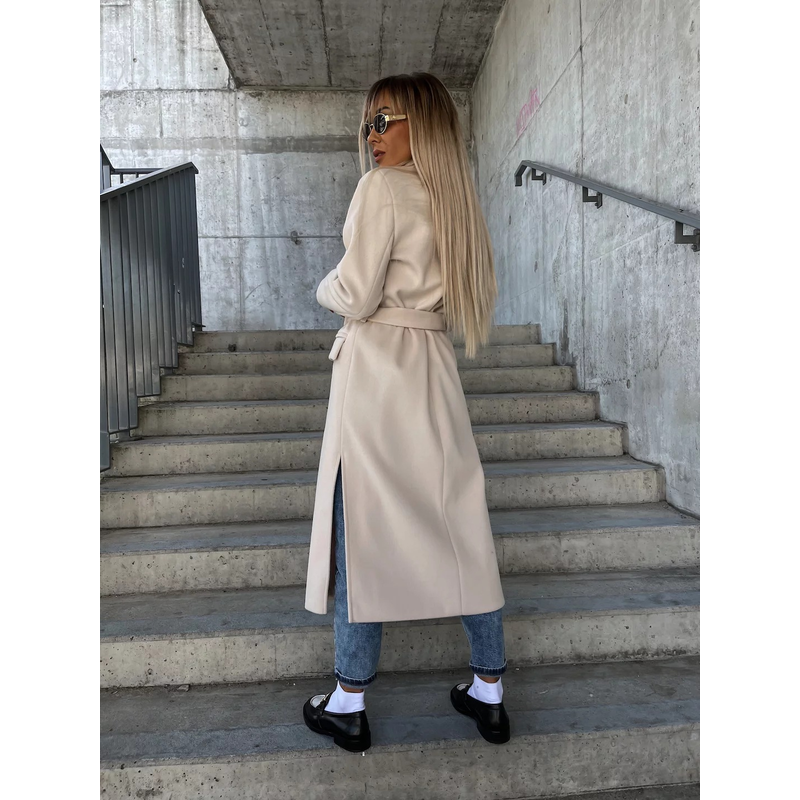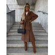Double-breasted Lapel Split Jacket With Belt Winter Fashion Casual Long Sleeve Button Daily Coats For Women Clothing Coffee XL