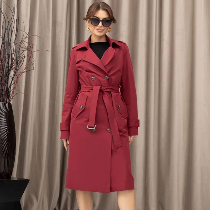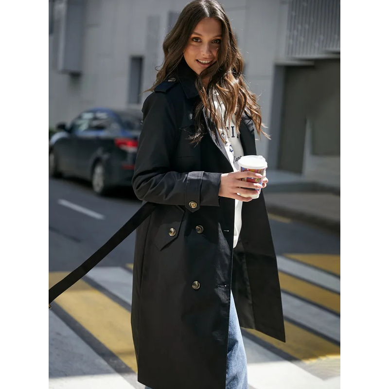 Double Breasted Women's Dust Coat Classic British Style Lace-up Black M