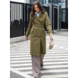 Double Breasted Women's Dust Coat Classic British Style Lace-up Green M