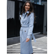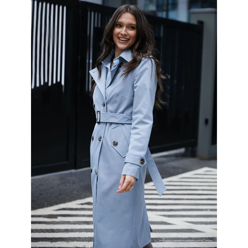 Double Breasted Women's Dust Coat Classic British Style Lace-up Light Blue M
