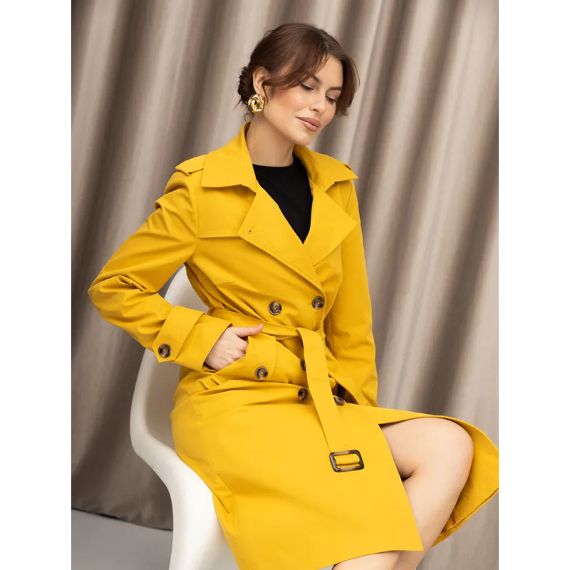 Double Breasted Women's Dust Coat Classic British Style Lace-up Yellow S