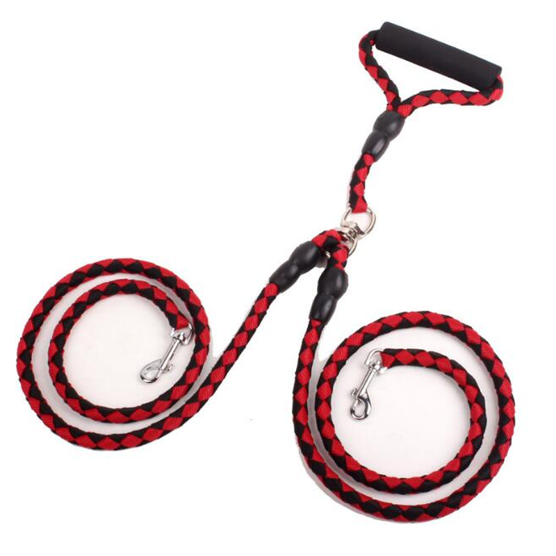 Double-Ended Traction Rope For Walking The Dog Hand-Double-Ended Traction Rope One Plus Two Leash Collar Pet Supplies Dog Collar Red