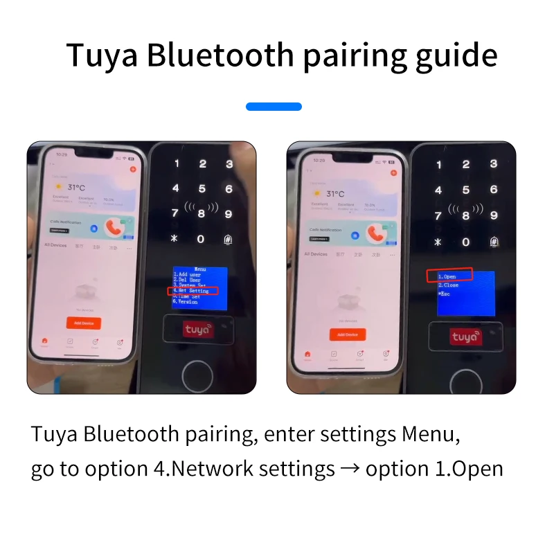 The electronic door lock can be unlocked using the APP, Remote Control,Bluetooth or Wifi(needs a Tuya Gateway), fingerprint, password, or card.