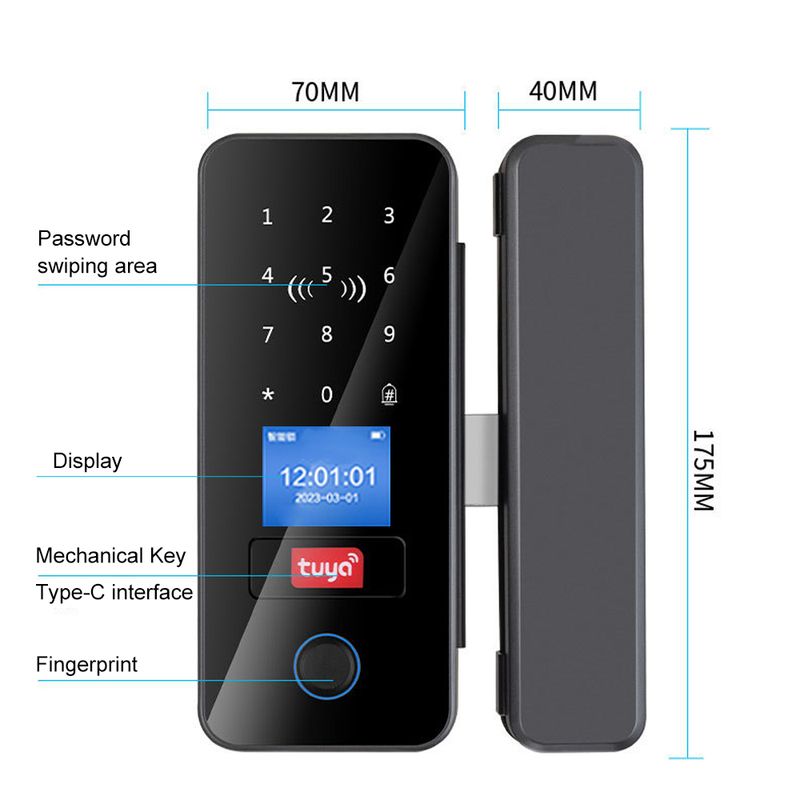 The highlights of this electronic door lock include its built-in doorbell, biometric functionality, Supports remote door opening, with emergency charging interface, supports connecting remote control(optional) and Tuya WIFI gateway(optional) for remote door opening and compatibility with the Tuya smart home platform.