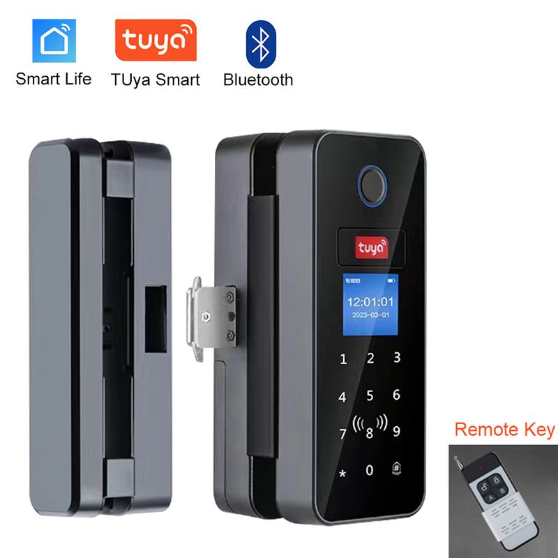 Double Hook Smart Glass Door Lock Glass Sliding Door Tuya App Biometric Fingerprint Lock Bluetooth IC Card Electronic Digital
