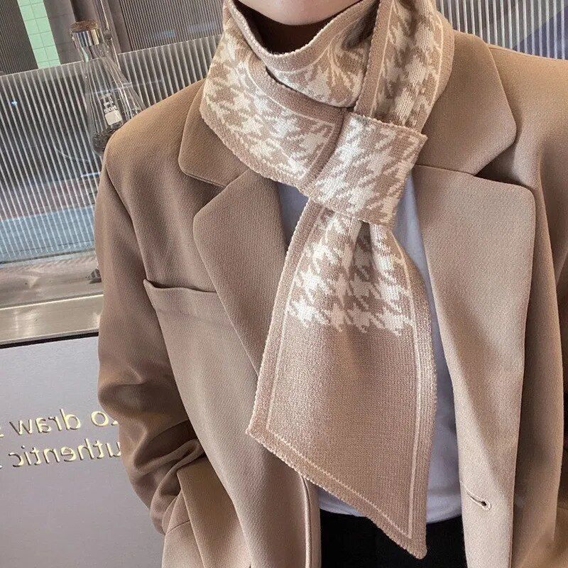 Double Knit Instant Scarf Fashion Plaid Scarf Female Autumn Winter Thick Warm Outdoor Neck Scarf 110*11cm