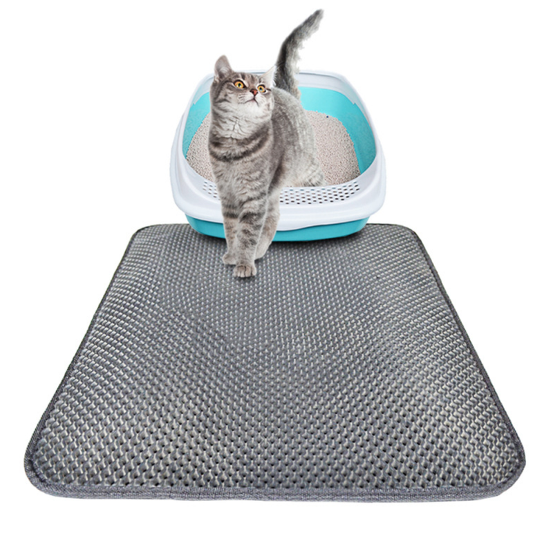 Double Layer Litter Cat Bed Pads Pet Cat Litter Mat Trapping Pets Litter Box Mat Pet Product Bed For Cats House Clean Mat 46x60cm Foldable gray