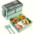 【3 in 1 Compartment Design】: Our bento box adopts 2 layers and 3 compartments design with a top cutlery compartment.