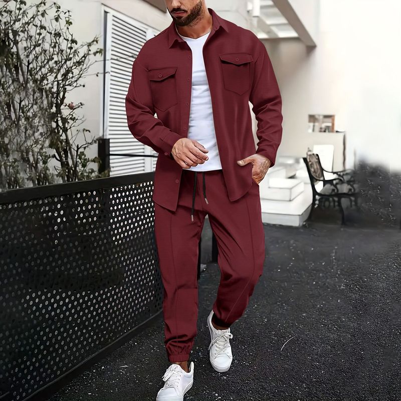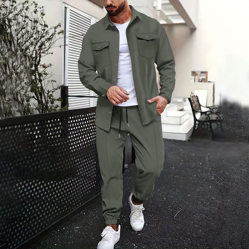 Double Pocket Printed Men's Casual Long Sleeve Shirt Trousers 1 Style XXL