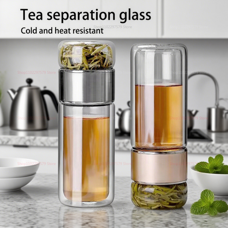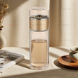 Double Wall Glass Tea Bottle 420ML Insulated Tumbler with Tea Strainer Leak Proof Hot Water Bottle for Office Travel Camping