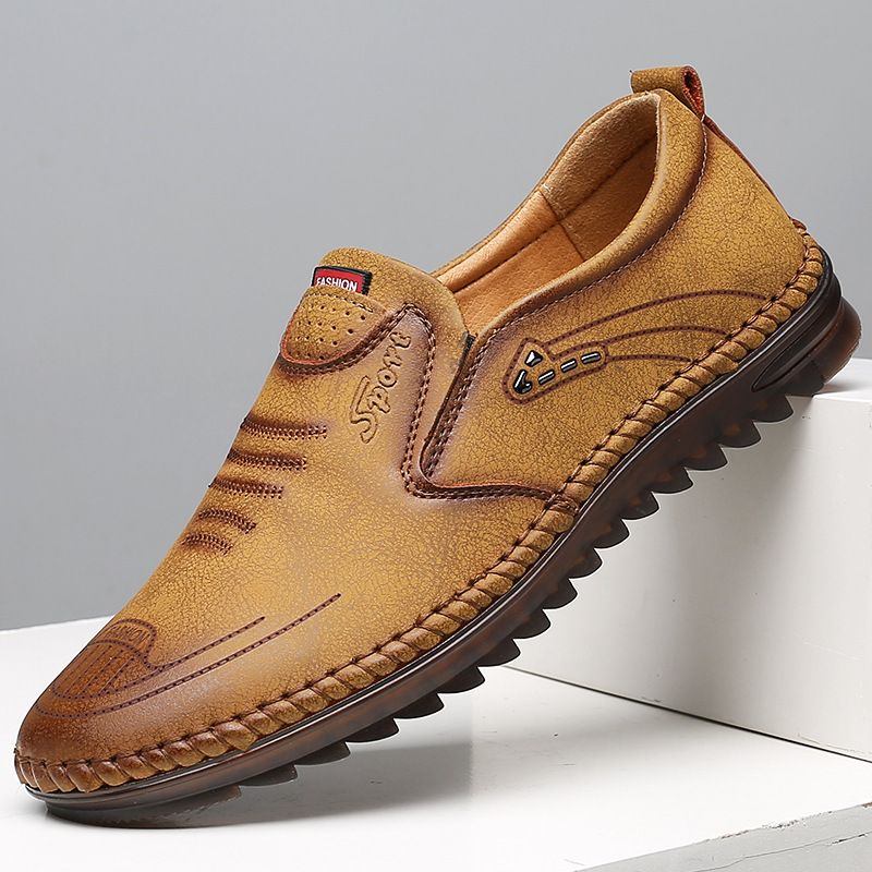 Doudou Shoes Flat Heel Set Foot Casual Shoes Lazy Driving Shoes Beef Tendon Sole Khaki 38