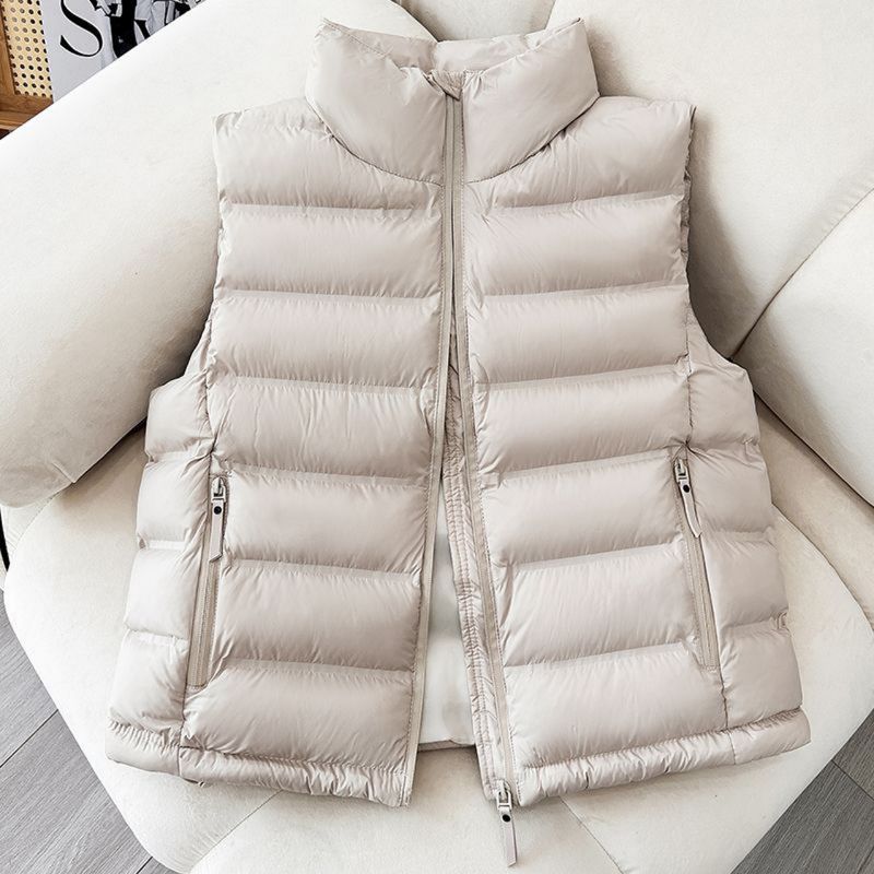 Down Cotton Lightweight Short Vest Autumn And Winter Beige M