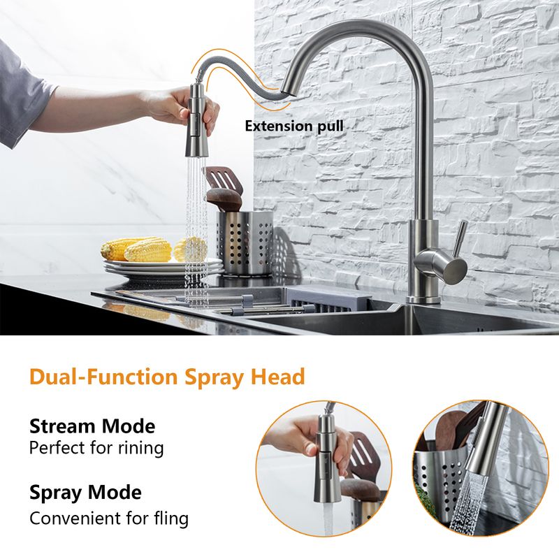DQOK Kitchen Faucet Pull Out Brushed Nickle Sensor Stainless Steel Black Smart Induction Mixed Tap Touch Control Sink Tap