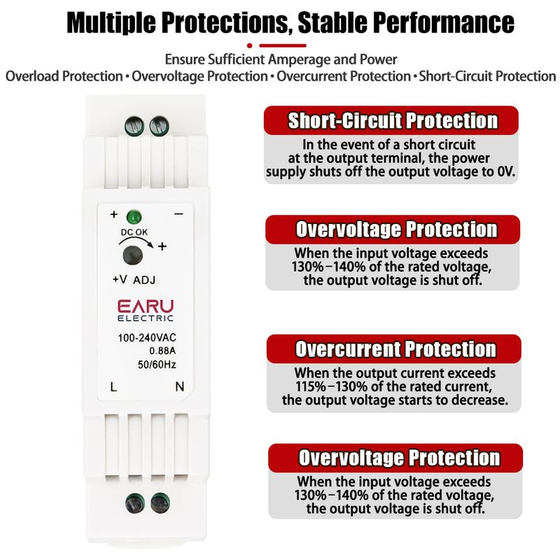 (DR-15-5 5V 2.4A,DR-15-12 12V/1.25A,DR-15-15 15V/1A,DR-15-24 24V/0.63A)