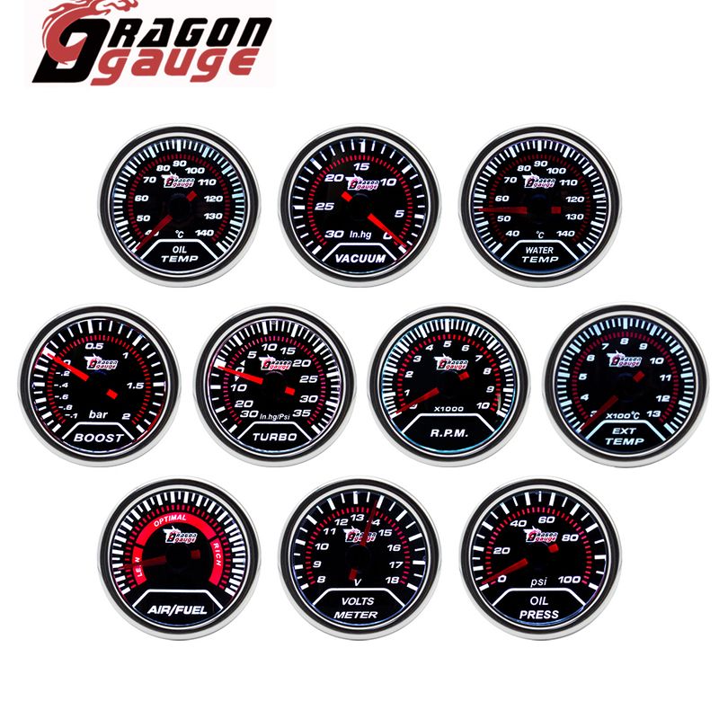 「DRAGON」 52MM Water Temp Oil Temp Oil Press Voltmeter Vacuum Tachometer RPM Boost Gauge Air Fuel Ratio EGT Gauge for 12 Volt Car
