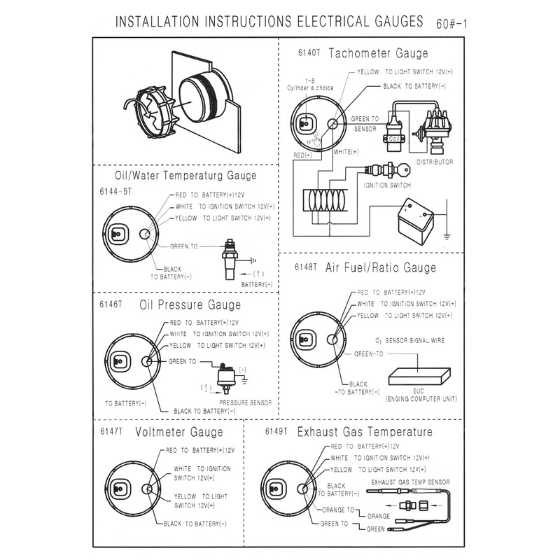 Water temperature gauge, oil temperature gauge, oil pressure gauge, exhaust temperature gauge,with sensor.