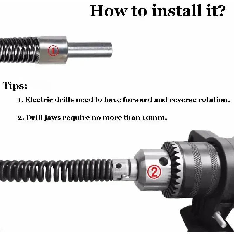 4. This drill pipe cleaner is great for use in the plumbing of all drain sinks including kitchen and bathroom sinks, toilets, bathtubs, showers, and drainage pipes.