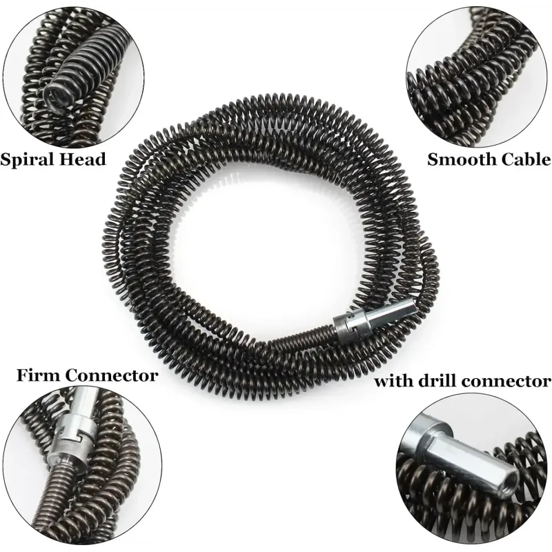1. This professional drain auger cable comes complete with heavy-duty steel, more than enough for most household clogs, keeping your drains flowing smoothly. What's more, the springs can be stored in the drum to keep it tidier than conventional drain cleaner.