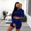 Drawstring Hooded Sports Fitness Running Suit Blue S