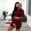 Drawstring Hooded Sports Fitness Running Suit Red XL