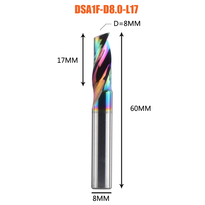 Dreanique 1pc 3.175 4 6 8mm CNC Single Flute Solid Carbide Alloy End Mill, DLC Coating Milling Cutter bit for Alu DSA1F