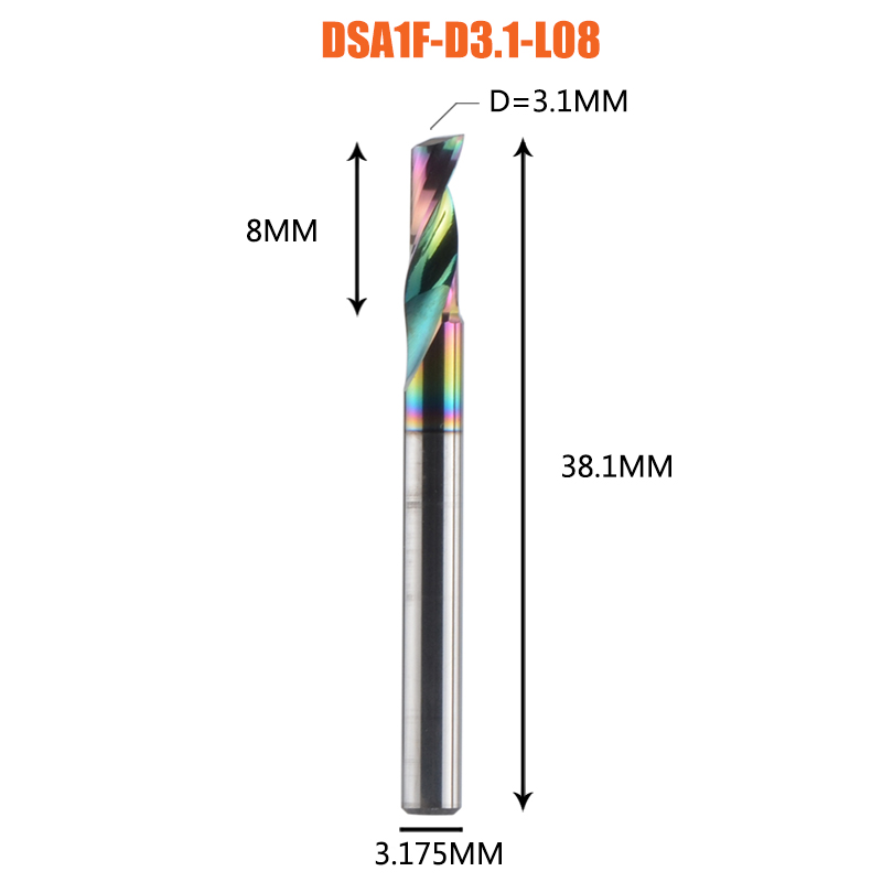 Dreanique 1pc 3.175 4 6 8mm CNC Single Flute Solid Tungsten Carbide Alloy End Mill, DLC Coating Milling Cutter for Aluminium