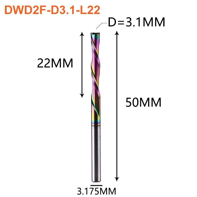 Dreanique 1pc DLC Coating Solid Carbide Milling Cutter 3.1 4 6 8 6.35mm 2 Flute Spiral Router Bit End Mill Wood MDF Down Cut