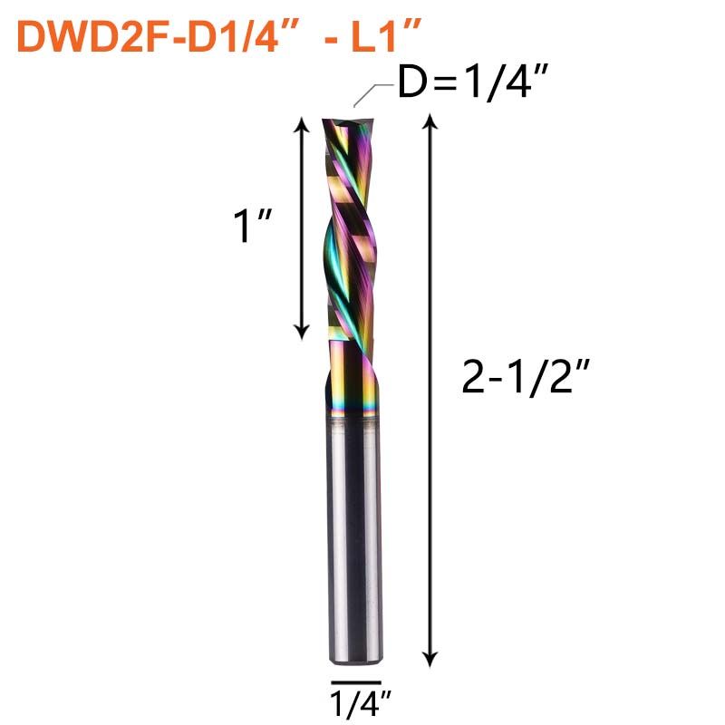 Dreanique 1pc DLC Coating Solid Carbide Milling Cutter 3.1 4 6 8,6.35mm 2 Flute Spiral Router Bit Carbide End Mill Wood MDF Down Cut