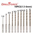 【135 Degrees Split Point and Parabolic Flute】Drillforce Easy Cut Split Point design makes drilling easy with less pressure and prevents drill bits walking on the working surface. Fully ground modified parabolic twist flute design clears chips quickly, decreases friction and heat damage.