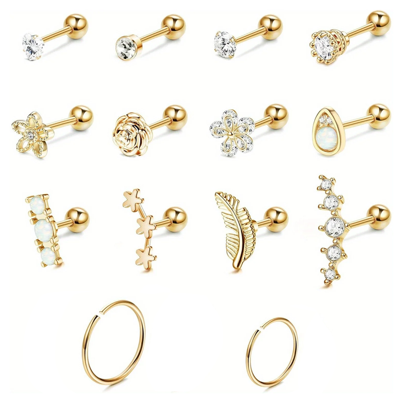 【Fashion &Convenient Design】 Star, flower, feather, heart, shiny cubic zirconia, opal, hoops are classic elements in cartilage tragus earrings. These elements are fashionable, personalized, elegant, simple and cute. Convenient Design: UPGRAGE single thread rotation, 4mm/0.16in screw ball designs are easy for wearing and taking off. They are suitable for different occasions, party, commuting and daily life.