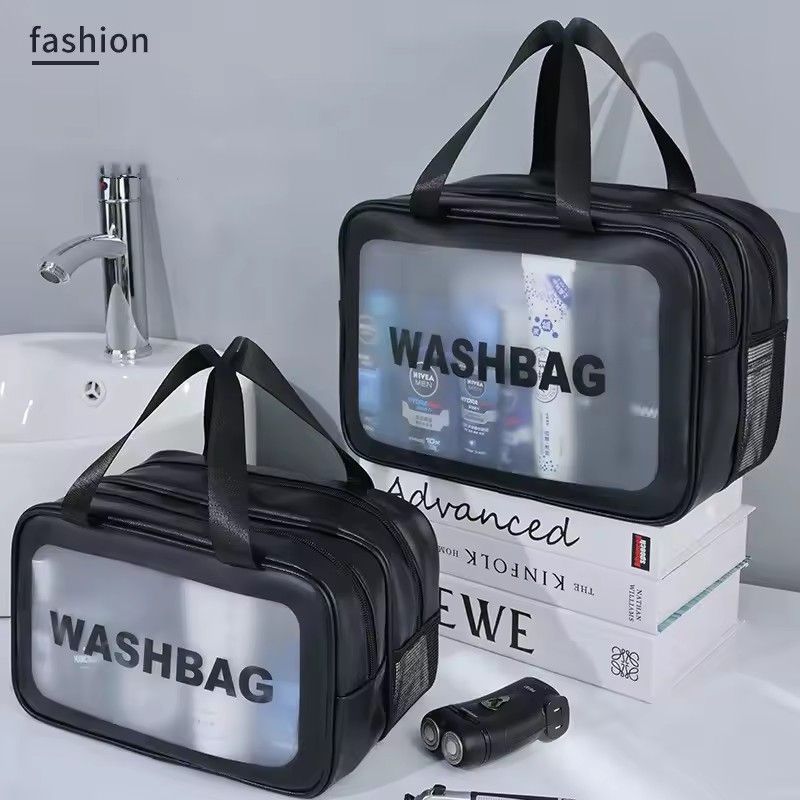 Dry-wet separation double transparent PU makeup bag portable washing bag cosmetic storage bag travel fitness swimming essentials
