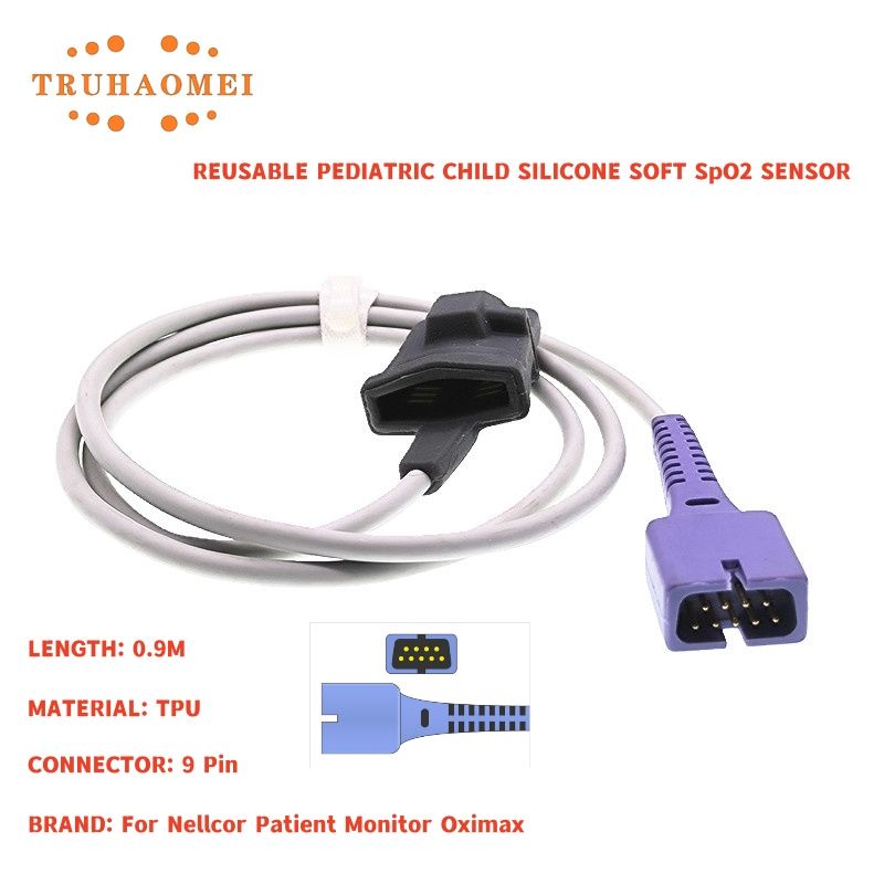 4. TM-K0144PS-S, Pediatric Child Silicone Soft SpO2 Sensor 0.9 Meters DB9 Pin with Oximax Tech