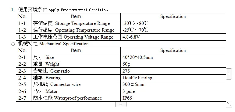 DS3218 20KG Metal Gear Digital Servo — Specification