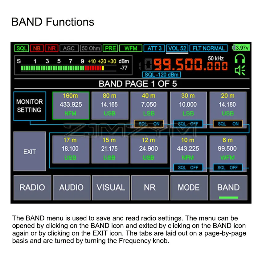1) The radio is built on the SDR principle and the functionality is determined by the loaded software.