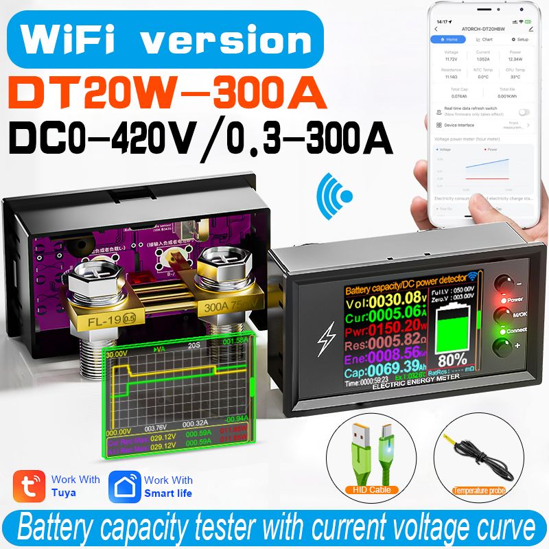 DT20W 0-420V Tuya WiFi Smart Lithium Battery Capacity Detection Tester DC digital Display Current Voltage Coulomb Power Meter